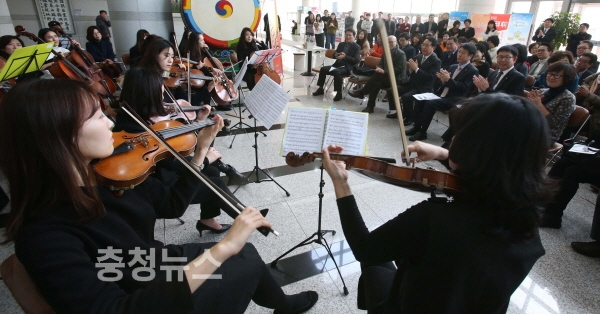 대전 동구(구청장 한현택)는 12일, 구청 1층 로비에서 점심시간을 활용, 공무원 및 방문객을 대상으로 ‘동구와 함께하는 정오의 멜로디’ 브런치 음악회를 개최했다고 밝혔다.