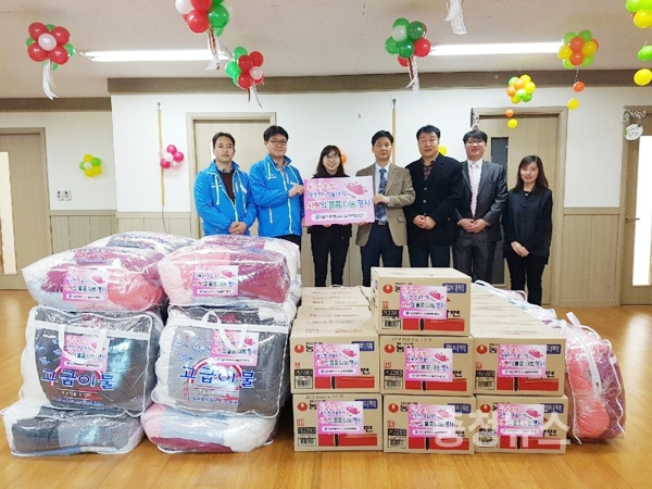 이번 행사는 대전시에서 추진하고 있는 '연말연시 어려운 이웃돕기 추진운동'의 일환으로써 김근종 이사장을 비롯해 김기문 노조위원장 등 노사 관계자가 참석한 가운데 직원들이 십시일반 모은 성금으로 구입한 이불 50채와 라면 50박스를 성세재활원과 로뎀복지원에 기부했다.