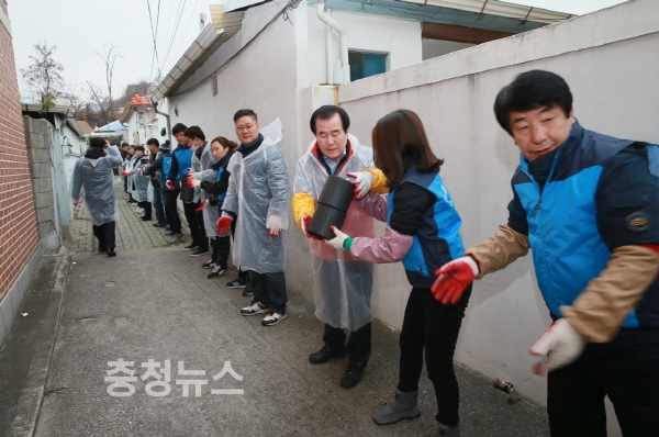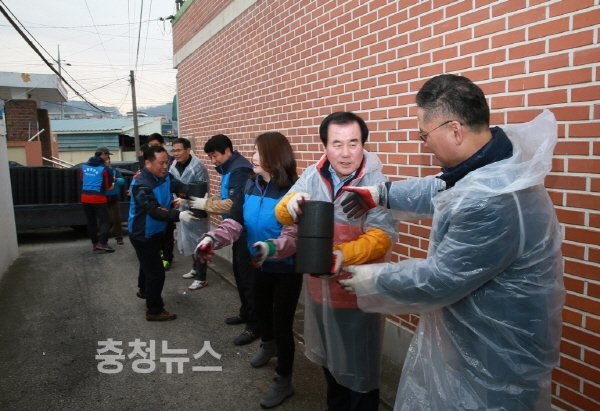 김지철 충남교육감은 13일 NH농협은행 충남영업본부(본부장 이강신)와 내포청년봉사회가 공동 주최한 행복나눔 사랑의 연탄 배달행사에 참여해 구슬땀을 흘렸다.