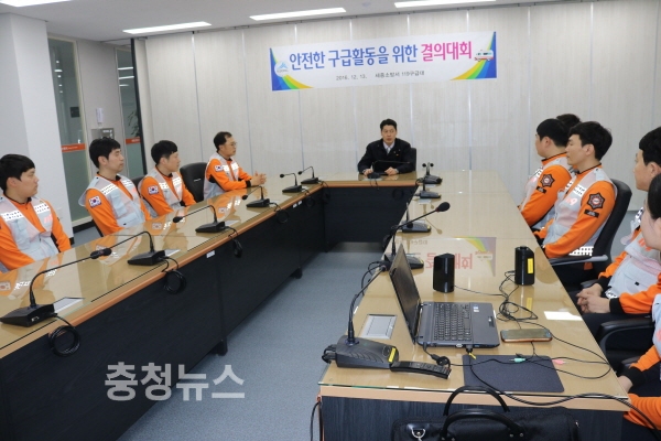 구급대원 15명이 참가한 가운데, 구급활동 시 대원들의 안전의식 강화와 안전 확보 노력을 다짐했다.
