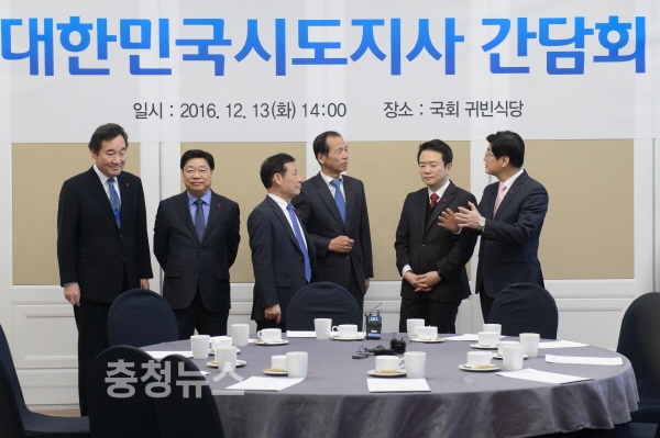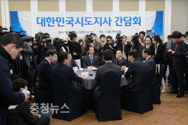 이춘희 세종시장을 비롯 박원순 서울시장, 권선택 대전시장, 남경필 경기지사, 안희정 충남지사 등 17개 시도지사들이 13일 오후 2시 국회에서 긴급 간담회를 갖고, 민생안정 및 혼란방지 대책을 논의했다.