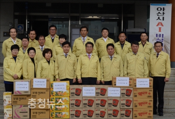 아산시의회(의장 오안영)는 13일 AI 재난안전대책본부가 설치되어 있는 아산시농업기술센터를 방문하여 아산시의 방역활동상황을 점검하고 상황실 근무자들에게 위문품을 전달하며 관계자를 격려했다.