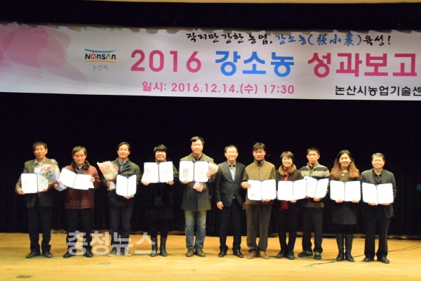 또, 지난 11월 2일부터 5일 서울 코엑스에서 열린 서울식품대전에 ‘2016 강소농 창조농업대전’이라는 타이틀로 참여해 논산강소농 경영체에서 생산된 농산물과 가공품등을 홍보했으며,‘버섯돌이 양송이농장 변국향경영체’가 우수강소농으로 선정돼 농촌진흥청장상을 수상하기도 했다.