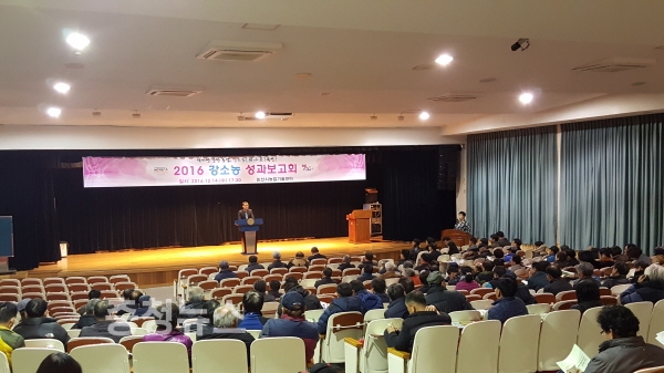충남 논산시농업기술센터(소장 이재식)는 14일 농업기술센터 대강당에서 농업경영체 등 250여명이 참석한 가운데 2016 강소농 경영체 성과보고회를 개최했다.