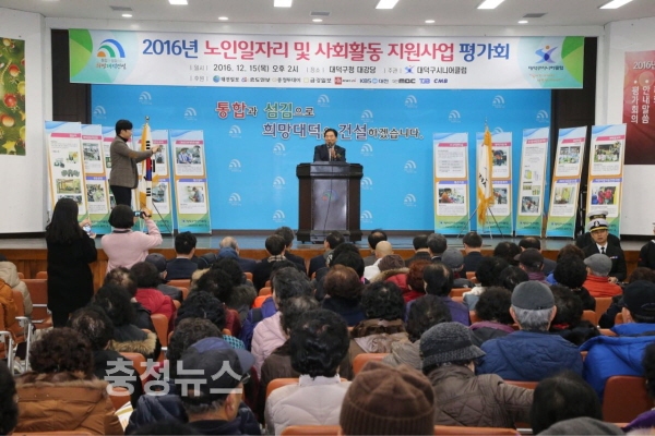 대전 대덕구 시니어클럽(관장 김문규)에서는 15일 구청 대강당에서 박수범 대덕구청장, 박종래 대덕구의회의장, 참여 어르신 등 300여 명이 참석한 가운데 어르신 사회활동지원 사업 종결평가회를 개최했다.