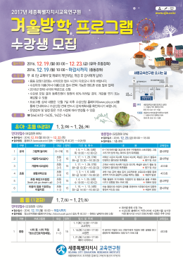세종특별자치시교육연구원(원장 이현복)이 겨울방학을 맞아 오는 19일부터 유아·초등·중등 7개 강좌의 수강생을 모집한다고 밝혔다.