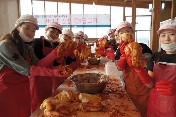 (청통) : 골프존카운티 청통 임직원들이 지난 5일 영천희망원을 찾아 사랑의 김장 담그기 봉사활동을 펼치고 있다.