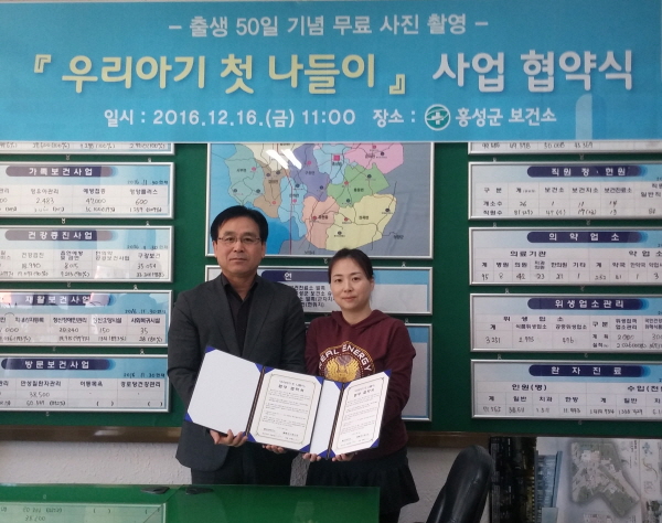 홍성군 보건소는 지난 16일 출산 친화적 분위기 조성을 위한 민ㆍ관 협력추진을 위해 '우리아기 첫 나들이' 사업 협약식을 가졌다.
