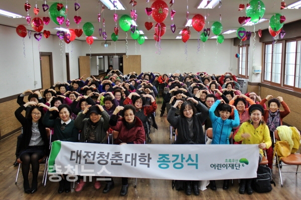 초록우산 어린이재단 대전종합사회복지관 (www.childfund-daejeon.or.kr 관장 유 미)은 12월 19일 80명의 지역 어르신들과 함께 “대전청춘대학” 종강식을 실시하였다.