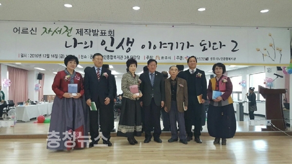 공주시(시장 오시덕)는 지난 16일 공주시노인종합복지관에서 가족, 친지 등 100여명이 참석한 가운데 ‘나의 인생, 이야기가 되다’라는 제목의 자서전 제작발표회를 개최했다고 밝혔다.
