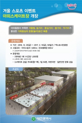 전국 최고의 야외스케이트장과 민속썰매장이 대전엑스포시민광장에 문을 연다.