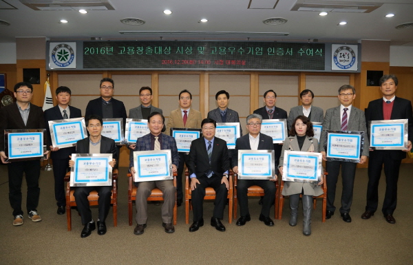 대전광역시(시장 권선택)는 20일 ‘2016년도 고용우수기업’에 대한 인증서(패) 수여식과 고용창출이 매우 우수한 기업에 대한 고용창출대상 시상식을 가졌다.
