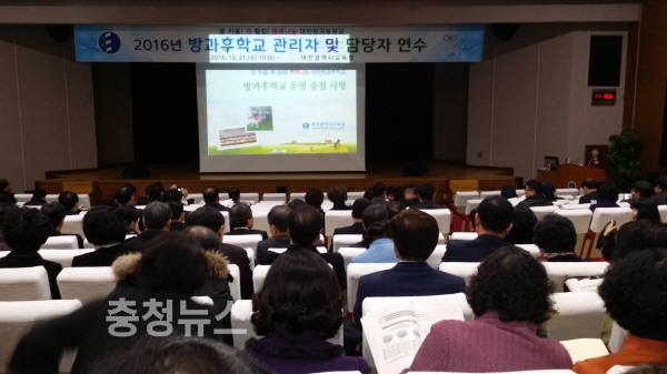 대전시교육청(교육감 설동호)은 2016년 12월 21일(수) 대전교육과학연구원에서 초·중·고 학교장 296명과 업무담당자 442명을 대상으로 방과후학교·돌봄교실 관리자 및 담당자 연수를 실시하였다. 이번 연수는 학교 현장에 방과후학교·돌봄교실 운영 내실화 지원 및 프로그램 질 제고를 목적으로 하고 있다.