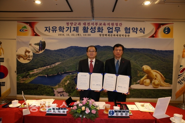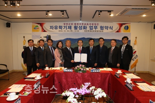 청양군(군수 이석화)은 22일 오후 1시 30분 대치면 소재 백제문화체험박물관 회의실에서 대전서부교육지원청(교육장 김동문)과 자유학기제 및 진로진학교육 활성화를 위한 업무협약을 체결했다.