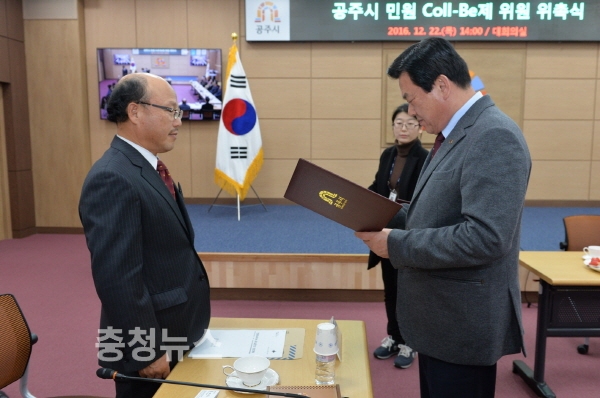 시는 22일 시청 대회의실에서 공주시 민원Coll-Be제 위원 위촉식을 열고 공주시를 비롯한 행정자치부, 농협, KT 등 기관 퇴직자로 구성된 22명의 위원을 위촉했다고 밝혔다.