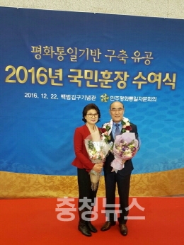 일 백범김구기념관에서 열린 2016년 국민훈장 수여식에서 민주평화통일자문회의 보령시협의회장으로 활동해 오며 평화통일기반 구축을 위해 앞장 서 온 공로를 인정받아 국민훈장인 목련장을 수상했다.