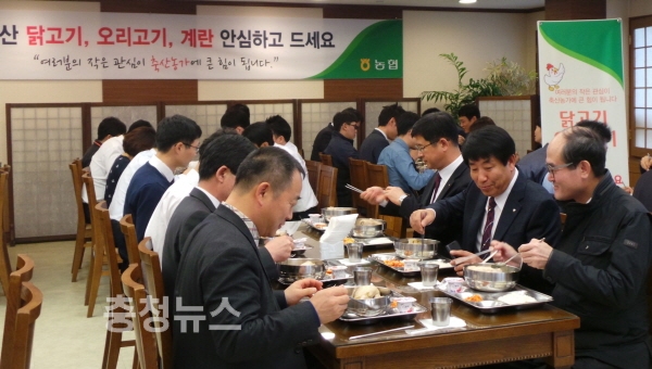 충남농협 임직원들은 그동안에도 매주 수요일은 닭과 오리를 활용한 식단을 이용해 왔는데, 앞으로는 주 2회~3회 이상 닭고기와 오리고기 식단을 구성해 가금류 소비촉진에 힘을 보태기로 하였다.