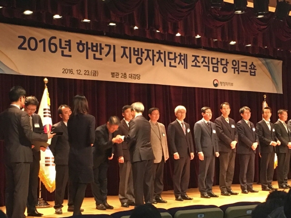 행정자치부장관 기관 표창 수상