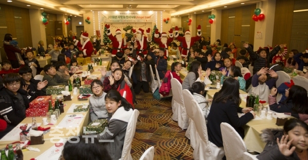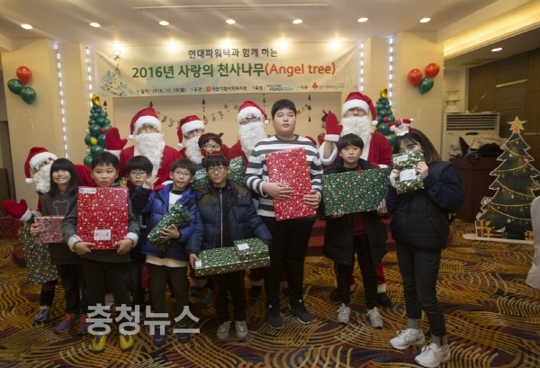 지난 19일에는 서산 동문동 더웨딩홀에서 ‘사랑의 엔젤트리’ 크리스마스 파티가 개최됐다. 사랑의엔젤트리는 사내기금행사를 통해 임직원들의 1:1 매칭 후원으로 크리스마스 선물을 마련하여 저소득가정 어린이 100여 명에게 전달하는 캠페인이다.