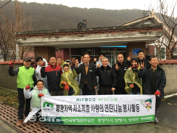 한국광해관리공단 충청지사(지사장 강철준)는 폐광지역인 보령시 성주면 개화2리를 대상으로 지난 22일 연탄 10,000장(570만원)을 지원하며 연탄나눔 봉사활동을 펼쳤다.