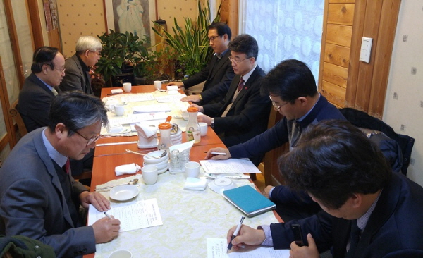 왼쪽부터 시계반대방향으로 김동수, 유진환 위원, 김영호 심사위원장(배재대총장), 곽영지 회장, 류호진, 권오덕, 우관섭 위원