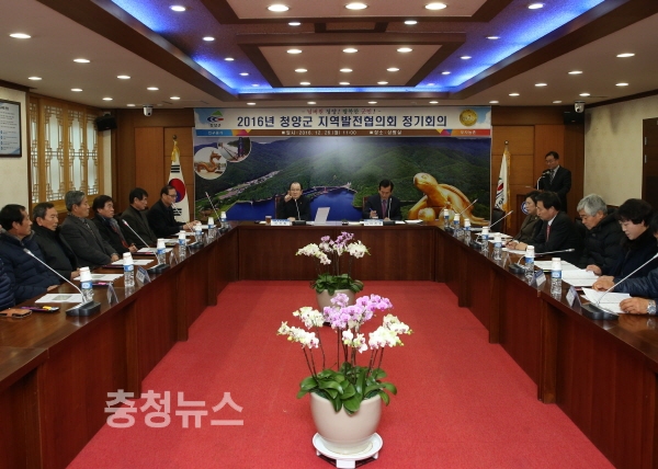 충남 청양군이 26일 오전 군청 상황실에서 이석화 군수를 비롯해 이진우 회장 등 20여명이 참석한 가운데 지역발전협의회를 열었다.