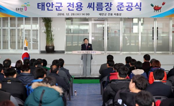 태안읍 평천리에 건립된 전용씨름장은 900㎡(270여 평) 면적의 지상 2층 규모로 총 사업비 16억원이 투입돼 지난 3월 착공에 들어갔으며, 1층에는 씨름장과 샤워실이, 2층에는 숙소와 식당이 마련됐다.
