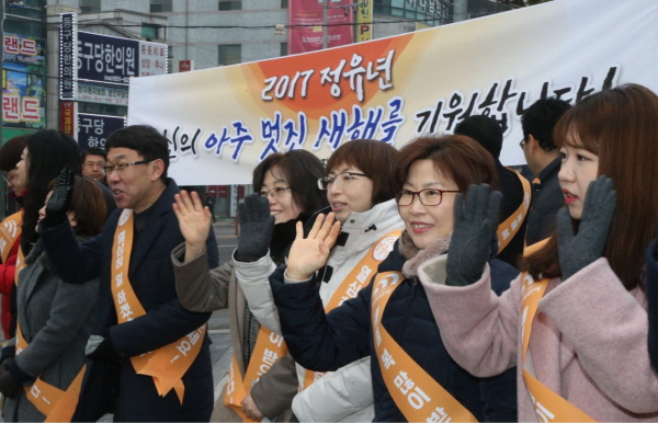 대덕구 공직자 300여 명은 2017년 정유년 업무 돌입 첫날인 2일 관내 주요 교차로 네 곳(하나로내과 앞·오정·읍내·신탄진 네거리)에서 출근길에 나선 구민과 시민에게 새해 인사를 하는 행사를 갖고 새해 업무를 시작했다.