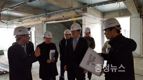 이상진 교육행정국장이 4일 기지유치원과 가람유치원 공사현장을 둘러보고 있다
