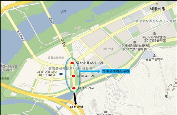 행복도시 대평동(3-1생활권) 시외버스터미널 앞 갈매로(종합운동장사거리 ~대평사거리) 구간은 약 400m의 짧은 구간에 3개의 교차로가 근접해 있어, 출·퇴근 시간대에 일부 교통정체로 인한 운전자들의 불편 민원이 있던 구간이다.