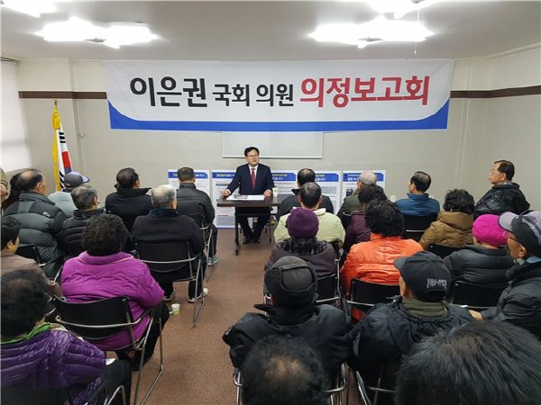 새누리당 이은권 국회의원(대전 중구)이 12일 석교동과 중촌동에서 20대 국회 등원 후 지역 국회의원으로서 지난해 의정활동을 구민께 보고하고, 이를 통하여 구민과 소통하기 위한 ‘찾아가는 의정보고회’를 개최했다.