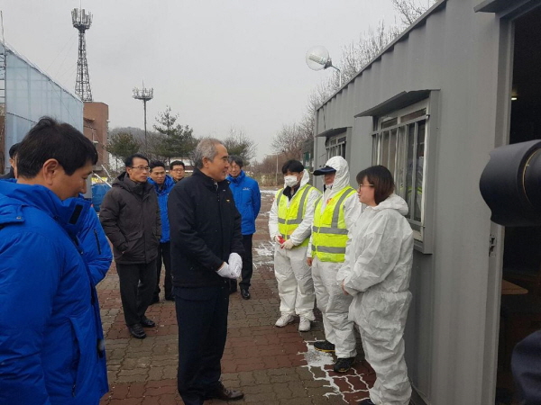 이번 방문은 AI 방역상황 및 소독 등 방역실태를 점검하기 위한 것으로, 전병욱 충남도 재난안전실장 및 구본영 천안시장이 배석했다.