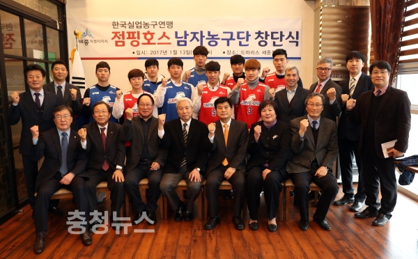 점핑호스(구단주 김언현) 남자실업농구단이 13일 12시 드마리스세종점에서 창단식을 가졌다.