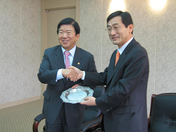 박병석 국회정무위원장(대전 서갑)이 7일 대덕연구개발특구 기관장 협의회등으로부터 대덕연구개발특구내 연구소와 기업의 법인세.소득세 감면혜택에 노력한 공을 인정받아 감사패를 받았다.