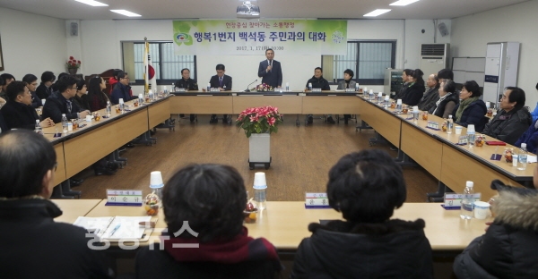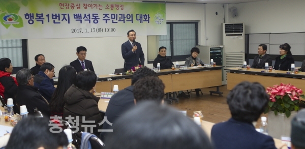 구본영 천안시장은 17일 백석동 주민센터를 방문해 30여명의 주민 대표들과 간담회를 가지며 주민들의 애로사항을 듣고 소통하는 시간을 가졌다