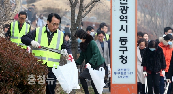 대전 동구 한현택구청장은 19일, 가오동, 판암동 일원에서 한현택 구청장을 비롯한 공직자 300여 명이 참석한 가운데, 청사주변 취약지역을 대상으로 설맞이 대청소를 실시했다.