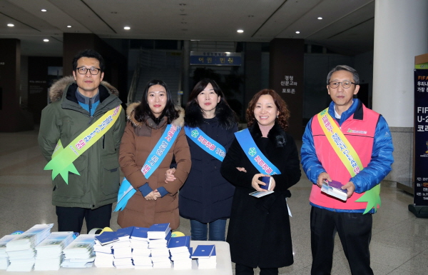 대전시가 설명절을 앞두고 20일 시청 주 출입구에서 감사관실과 공무원 노동조합지도부 50여명이 참여한 가운데 직원들을 대상으로 청렴캠페인을 실시했다.
