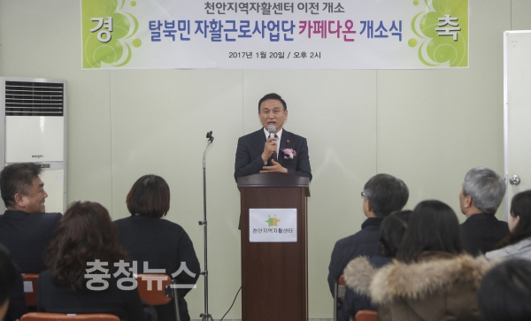 구본영 시장은 격려사를 통해 그동안 저소득층의 자립능력 향상과 취업알선을 위해 노력한 천안지역자활센터에 고마움 마음을 전하며, 앞으로 새로운 장소에서 저소득층에게 노동의 기회제공 및 다양한 서비스 제공으로 이들이 빈곤으로부터 스스로 벗어나 건강한 사회구성원으로 거듭날 수 있도록 최선의 노력을 다해주기를 당부했다.