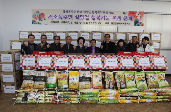 김형남 삼성동장은“설 명절을 맞아 어려운 이웃들에게 온정을 전달해주신 후원자분들께 감사를 전하며 또한 물품을 후원 받은 이웃들도 따뜻하고 행복한 명절을 보내시길 바란다”며“현암골 행복 복지 프로젝트를 성공적으로 정착시켜 저소득가정 주민의 행복 키움에 최선을 다하겠다”고 말했다.