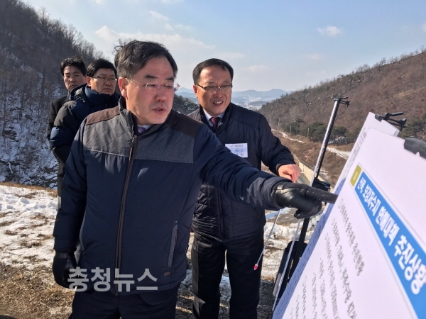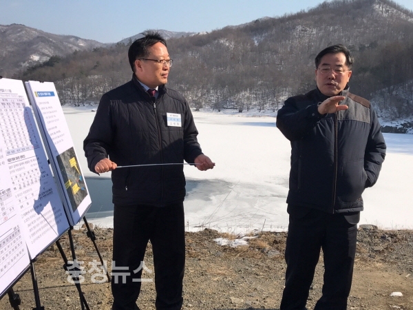 충남 예산 산묵저수지 가뭄대책 현장 점검(오른쪽 정승 사장)