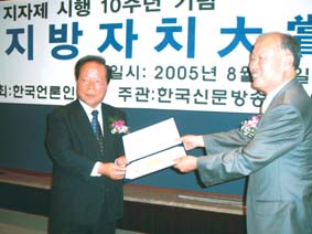 행정도시의 중심, 연기군이 한국언론인포럼이 주최한 ‘2005 지방자치대상’에서 살기좋은 도시 대상과 행정혁신 최우수군으로 선정되는 영예를 차지했다.
