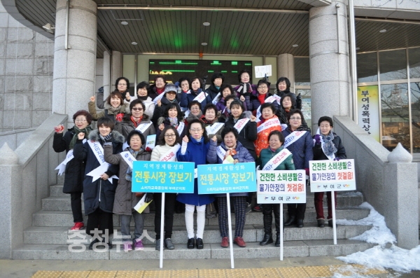 충남 부여군 이용우군수는 우리 민족 고유의 명절인 설을 맞이하여 지역의 물가안정 분위기 확산과 전통시장 이용확대를 위해 지난 25일 소비자교육중앙회 부여군지회 회원, 물가조사요원, 공무원 등 40여명이 참여한 가운데 설맞이 캠페인을 전개했다.