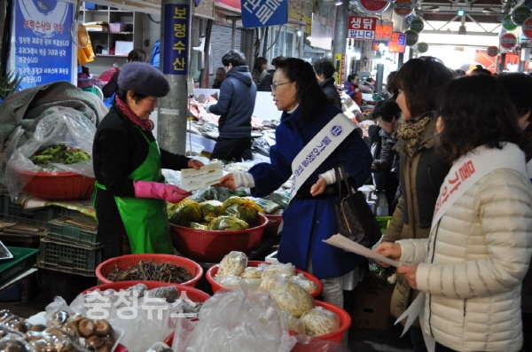 또 소비자단체 회원들과 물가조사요원들은 중앙시장 곳곳을 돌며 시장을 찾은 고객들에게 “전통시장이 시설이나 위생에 있어 인근의 대형마트에 비해 뒤떨어지지 않고 가격도 저렴하다”며 설 명절에 사용되는 제수용품과 생활용품 등을 전통시장에서 구매해 경기침체로 어려움을 겪고 있는 전통시장을 돕자고 군민들의 적극 참여를 홍보했다.