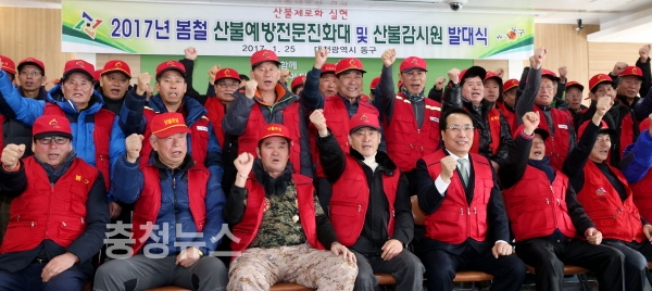 대전 동구 한현택구청장은 25일 구청 중회의실에서 봄철 산불조심기간(1월25일~5월15일) 시작과 함께 산불예방과 초동진화를 위한 산불진화대 발대식을 가졌다고 밝혔다.
