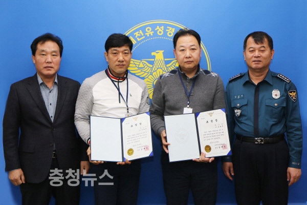 형사과 강력3팀에 근무하는 이대성 경위는 휴대전화 등 절취 피의자를 검거한 유공이며, 생활범죄수사팀 조갑석 경위는 차량절도 및 기타절도 피의자를 검거한 유공이다.