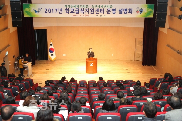 충남 보령시는 1일 오전 보령문화의전당에서 학교장, 영양교사 등 학교 관계자와 학부모, 생산자, 급식업체 관계자 200여 명이 참석한 가운데 학교급식지원센터 운영 설명회를 개최했다.