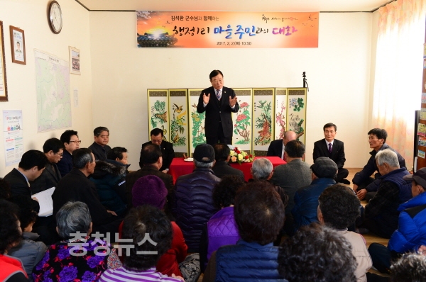 한편, 김석환 군수는 지난 1월 5일 홍성읍 2개 마을을 시작으로 2월 2일일까지 11개 읍⋅면 22개 오지 마을을 차례로 방문해 지역주민들로부터 큰 호응을 얻었다.