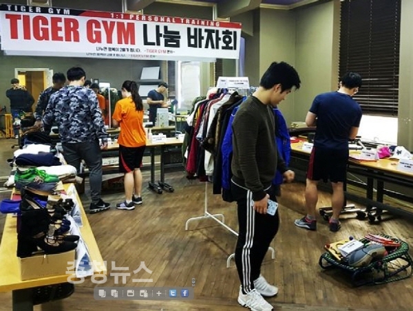 타이거짐 내 회원들과 트레이너들이 손수 모은 물품을 저렴한 가격으로 판매