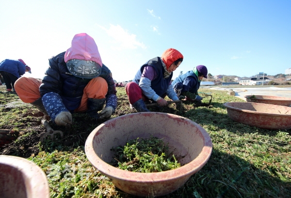 충남 태안군에서는 입춘을 앞두고 봄철 대표 봄나물인 냉이와 달래가수확이 한창이다