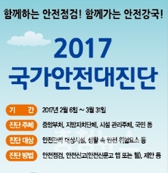 올 해는 국가안전대진단 시행 3년차로 국민안전처 추진계획에 따라 실시하며, 대상과 시행 범위를 늘리기보다는 공공시설에 비해 상대적으로 안전 관리가 취약한 민간시설 건설 현장을 집중 점검할 계획이다.